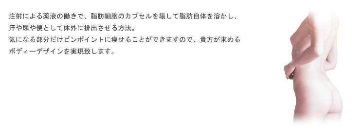 肥満部分の脂肪細胞が溶解消滅すれば、絶対数が減少することになり、部分痩せが可能となります。